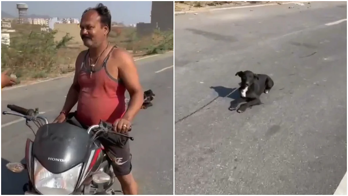 Udaipur: A disturbing incident surfaced from Rajasthan's Udaipur district on Friday, a man dragged a dog by a chain while riding a bike. After seeing the plight of the dog, a woman came forward and confronted the man. The entire incident, which took place in the Balicha area, was captured on camera and went viral on social media.
