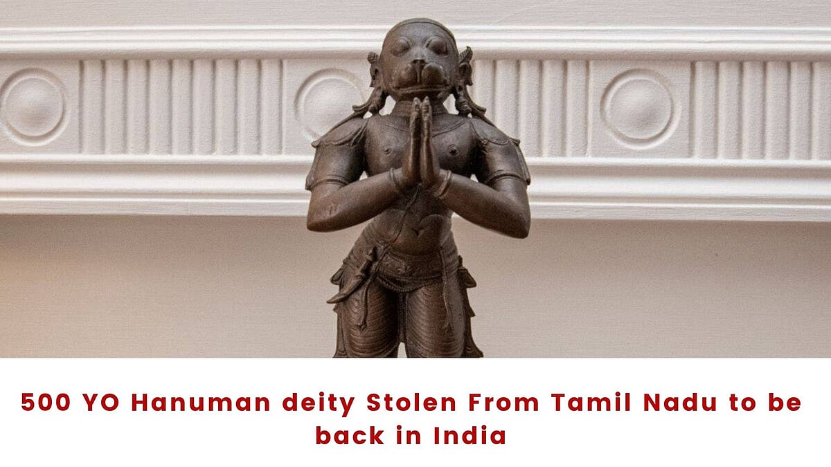 An idol of Lord Hanuman, stolen a decade ago would be repatriated to India soon. Built between the 14th and 15th centuries, during the period of the Vijayanagara empire, the statue was stolen from Tamil Nadu's Ariyalur district and smuggled abroad and was recently found in possession of a private buyer in Australia.