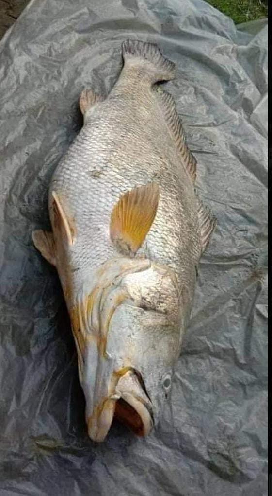 Kar jumped into the river when she saw the giant fish floating in the river. It took her some time and effort before she could pull the fish onto the riverbank. Locals helped her to take the fish to the market where it was identified as the Bhola fish.