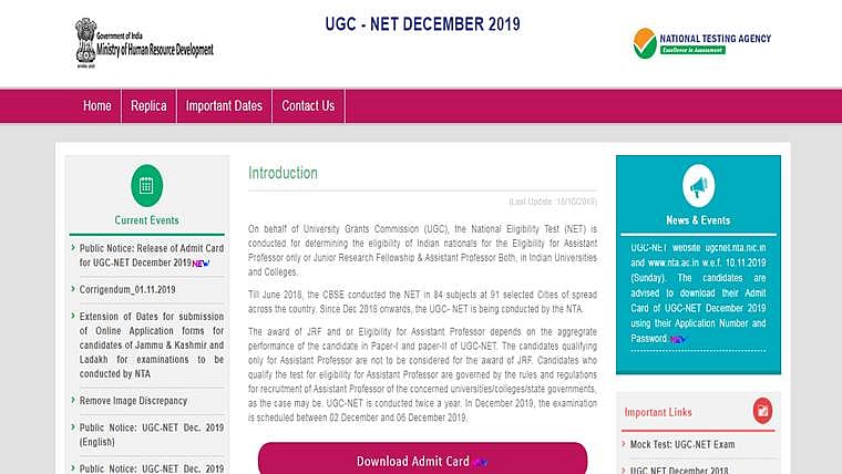 The National Testing Agency has released its admit card for the UGC NET December 2019 on Sunday. Registered candidates can now download the admit card from online at ntanet.nic.in.