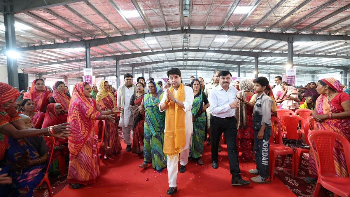 Badarwas (MP): Union Minister Jyotiraditya Scindia has inaugurated an Adani Vikas Kendra in Madhya Pradesh’s Shivpuri district, a facility designed to empower local women through garment production and skill development.