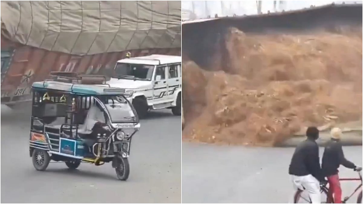 In the viral video, it could be seen that a truck loaded with husk hit the divider and overturned onto a white-coloured Bolero SUV. The car belonged to the state Power Department. The driver of the Bolero has been identified as 54-year-old Firasat, an employee of the Power Department, reported ETV Bharat.