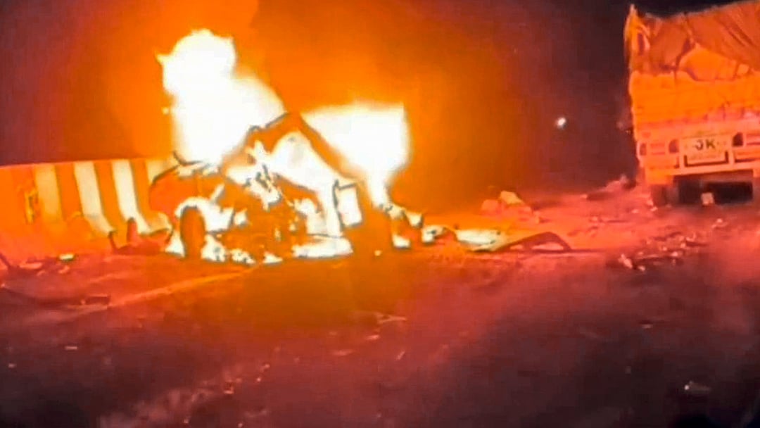 The collision caused the Bolero to be flung aside, where it caught fire with a loud explosion. The Swift car got trapped between the truck and the trolley. The blaze quickly engulfed the Bolero, leaving the occupants with no chance to escape.