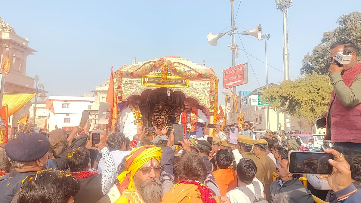 As the procession reached the main entrance of the Shri Ram Janmabhoomi Teerth Kshetra Trust, saints, priests, and citizens of Ayodhya welcomed the deities with grandeur. The celebrations included fireworks, flower showers, and distribution of holy offerings (prasad).