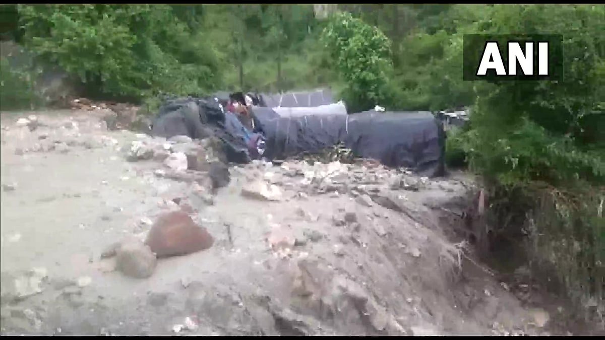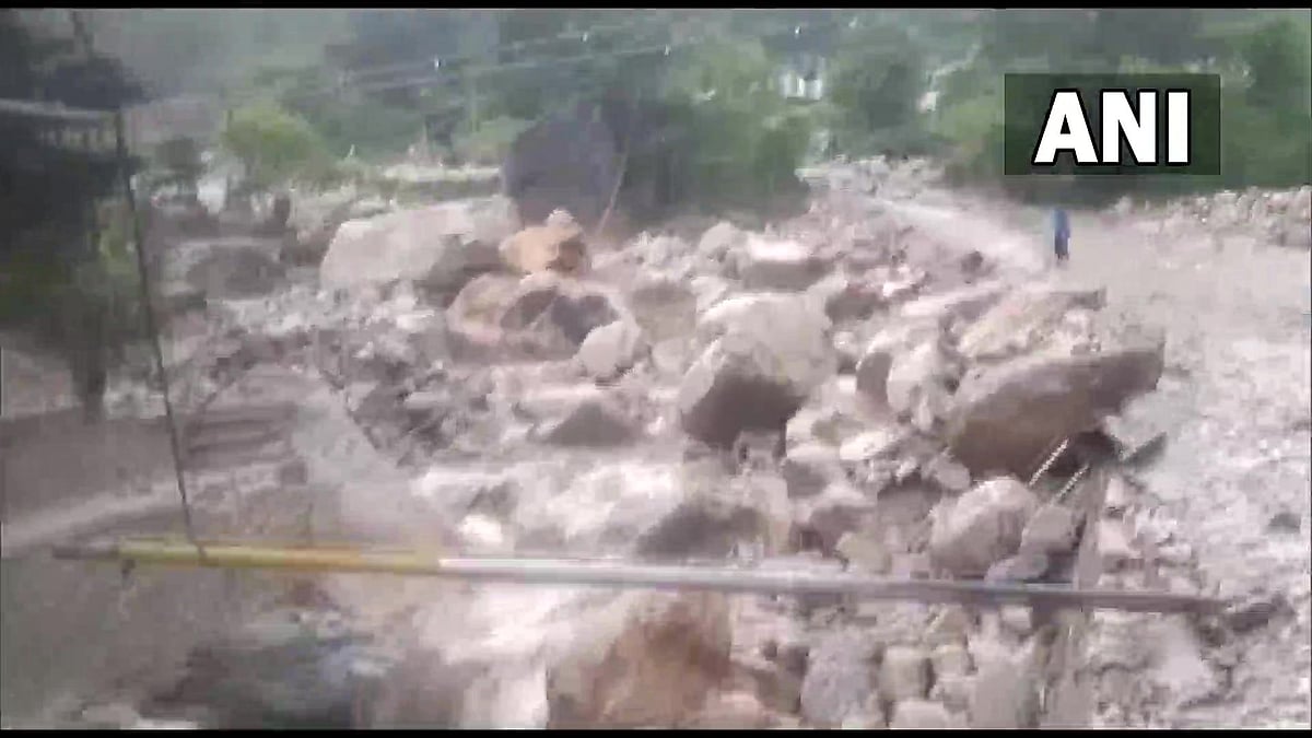 The temporary shelters of the Border Road Organisation (BRO) labourers have been damaged, while more than a dozen cars are stuck in the debris brought down by rainwater.