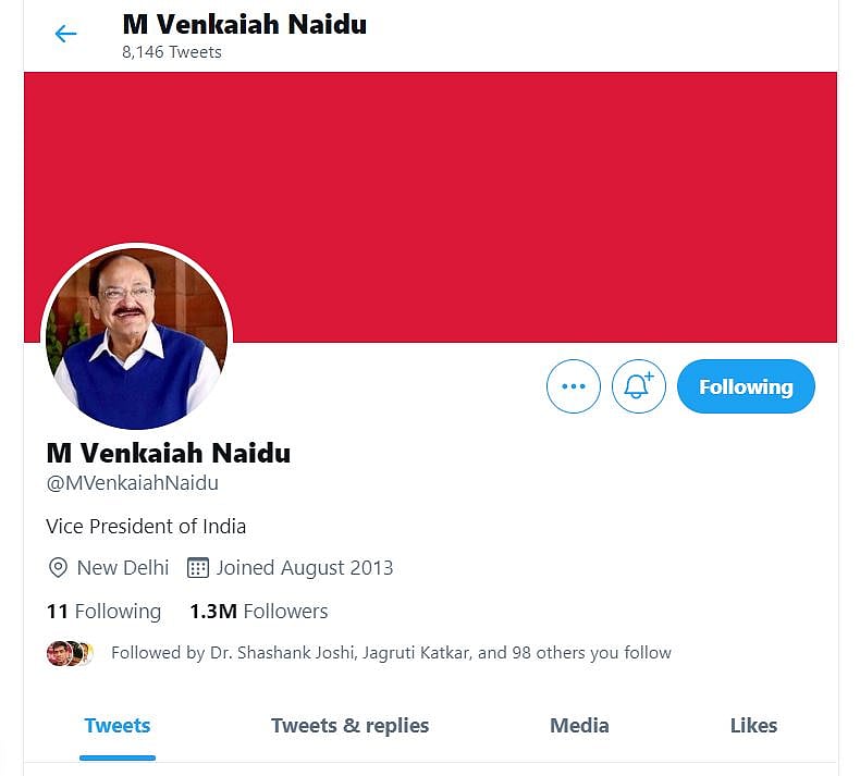 Vice President of India, M Venkaiah Naidu on Saturday lost his Twitter verification for some time. While the company has withdrawn the blue tick from his personal Twitter handle, it appeared to have been restored several hours later. His official handle, @VPSecretariat also continues to remain verified. It is however unclear as to what led to this.