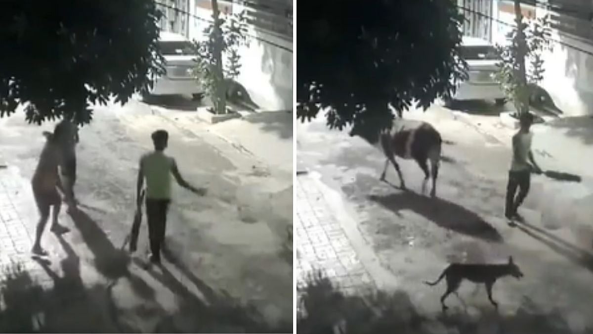 The incident was recorded by a CCTV camera installed in the vicinity. In the video, the youth, carrying a cricket bat, hit the dog repeatedly as his companions were standing behind him carrying sticks studded with nails.