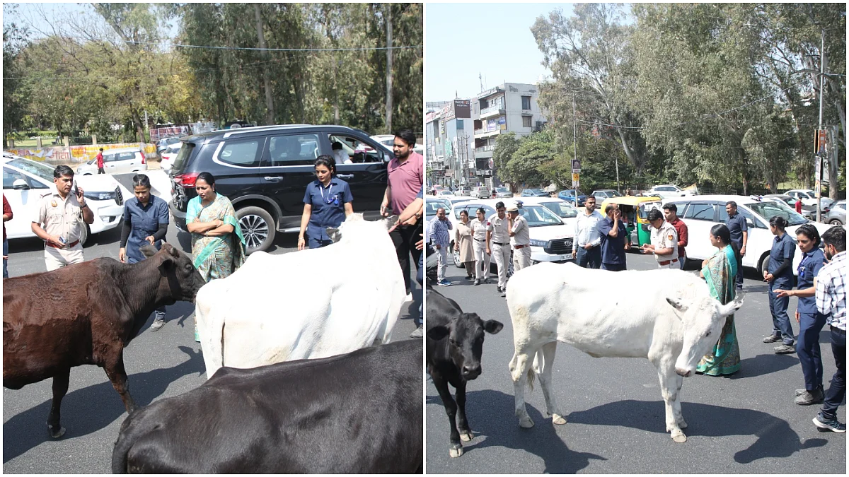 According to reports, four to five stray cows suddenly wandered onto the highway. The Delhi CM got down from her car and could be seen walking on the flyover with other officials.