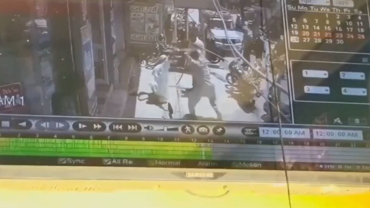The incident took place on April 26 at around 12:30 pm. In the clip doing the rounds on the internet, it is clearly seen that one of the attackers is assaulting a man inside a local hotel with sticks. The victim steps out briefly to create some distance between himself and the attacker, but then goes back inside and locks the premises.