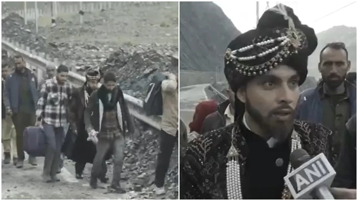 "It is my wedding day... This is the situation because of the heavy rainfall yesterday... We have to go on foot... We started travelling at 6 am. We parked our cars behind and now we will walk the rest of the way. We still have around 7-8 km more to walk. We would bring the bride the same way, as the roads are not cleared," the groom told the news agency.