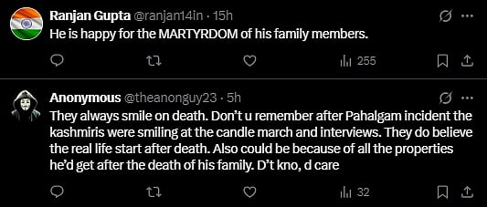 After the clip went viral on X, many users seized upon Tahseen’s body language rather than the tragedy he was describing. Several posts questioned how he could smile while recounting a fatal accident involving close family members.