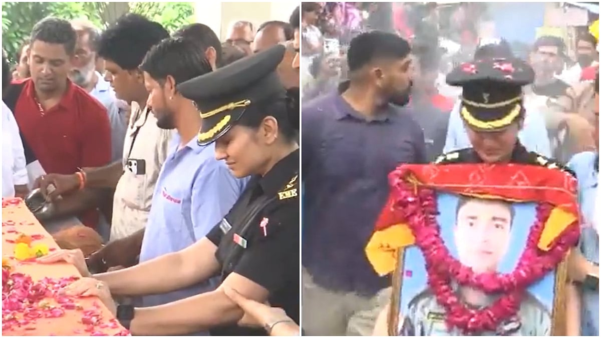 In another video, Lt Col. Chauhan could be seen leading the funeral procession of her husband. She was seen carrying Lt. Col. (Retd) Rajveer Chauhan's photo with her.