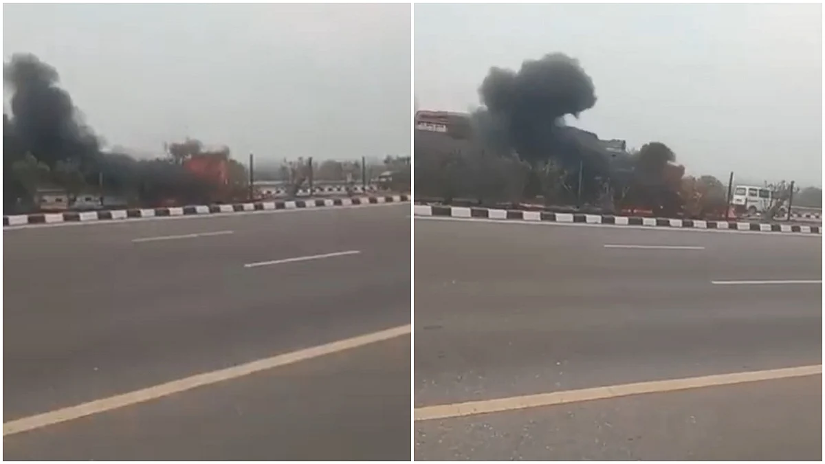 Lucknow: A massive fire broke out on the Agra-Lucknow expressway within the limits of Uttar Pradesh's Unnao district on Monday. According to reports, the blaze erupted after a collision between vehicles.
