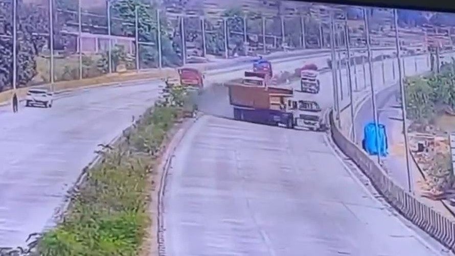 CCTV footage of the incident shows the truck losing control on the flyover. In an apparent attempt to avoid other vehicles, it struck the motorcycle and crashed into the bridge railing before crossing lanes and hitting the opposite side barrier.
