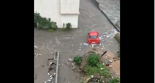 Videos posted on social media show the heavy flow of water flowing away vehicles.