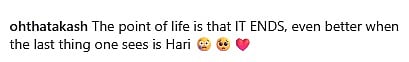 "The point of life is that IT ENDS, even better when the last thing one sees is Hari," one of the Instagram users commented.