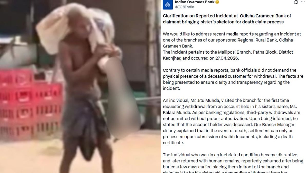 Indian Overseas Bank has issued a detailed clarification following widespread reports about a shocking incident at an Odisha Grameen Bank branch, where a man allegedly brought human remains to claim his deceased sister’s bank deposit.