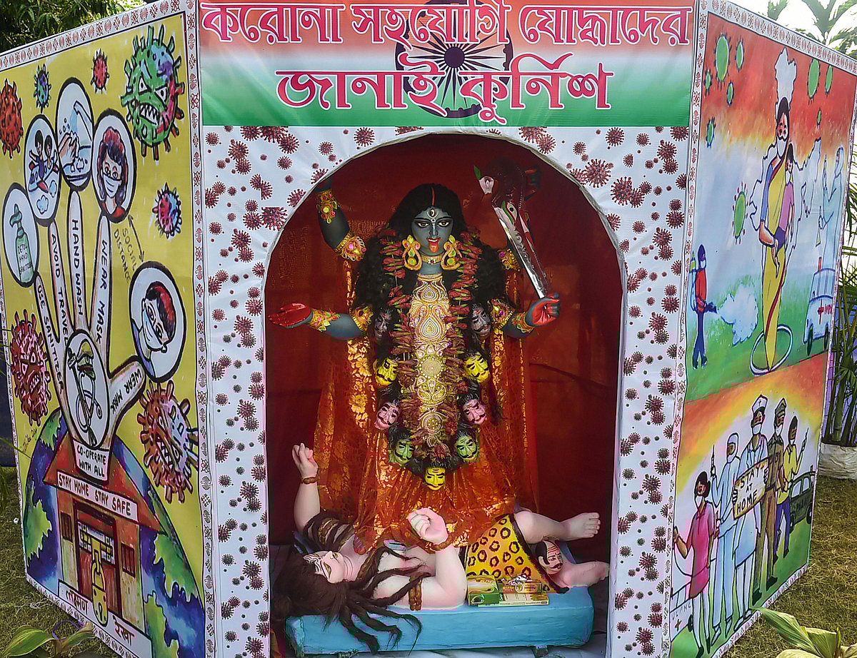 Even as 918 new Covid cases were seen in the last 24 hours and 14 new deaths, people in large numbers gathered in the Kali temples across the city especially in Dakshineswar temple.