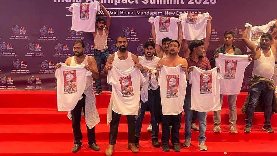 The Congress party has come at the receiving end of the backlash from the ruling BJP, after members of the Indian Youth Congress staged a shirtless protest during the AI Impact Summit at Bharat Mandapam in Delhi on Friday.