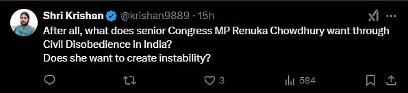 Congress MP Renuka Chowdhury recently sparked controversy with her remarks about civil disobedience. During her conversation with Rajya Sabha member Kapil Sibal, on the Political Kida podcast on February 10, Chowdhury said, "When people recognise their Constitutional rights and take to the streets, there will be civil disobedience in the country."