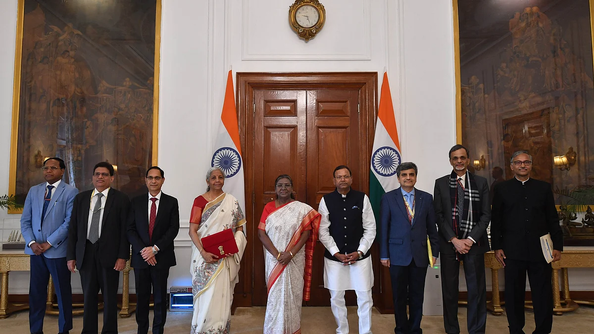 Sitharaman and Minister of State for Finance Pankaj Chaudhary met President Droupadi Murmu at the Rashtrapati Bhavan ahead of the Union Budget.