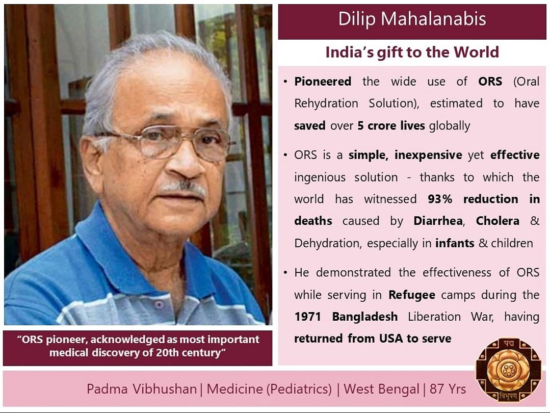 After years of delay, the President has decided to confer the Padma Vibhushan (posthomous) to the ORS developer, who is credited with pioneering the oral rehydration therapy which has till date helped save millions of lives worldwide.