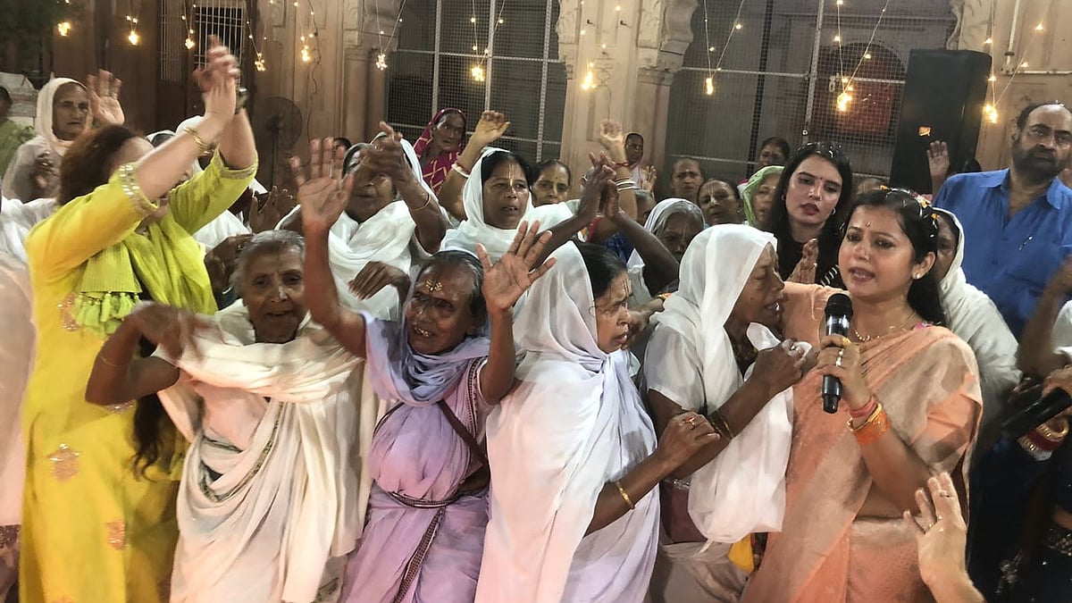 The celebrations at the 500-year-old Gopinath Temple were both emotional and symbolic. Around a hundred widowed mothers gathered to light colourful diyas, sing devotional songs, and share sweets in an atmosphere filled with warmth and acceptance.