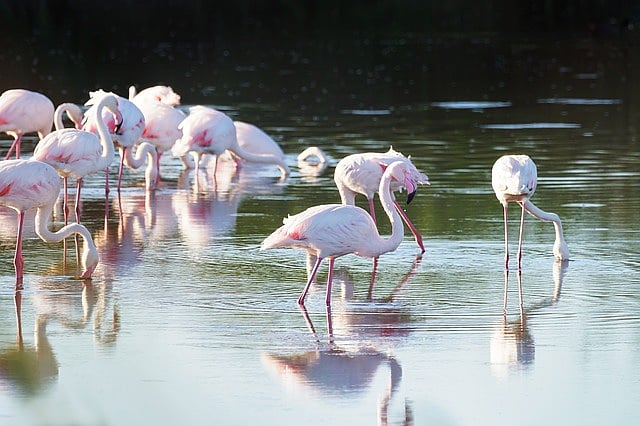 Greater Flamingo is the largest of all species of the flamingo family, found in the Indian subcontinent. They are likely to be the only tall, pink bird in any given locale.