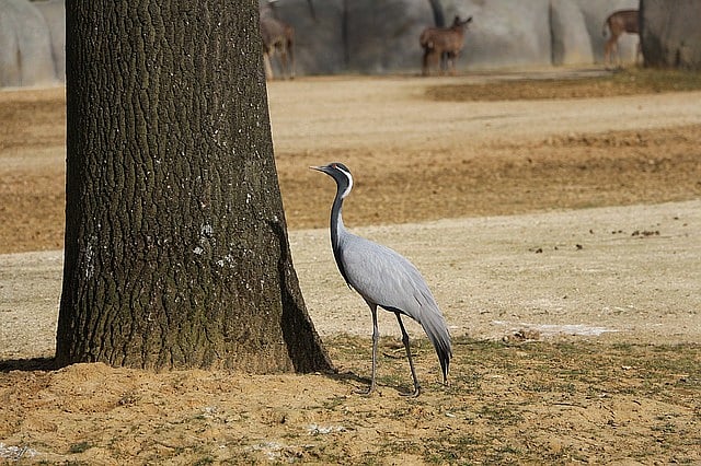 Demoiselle Crane spends the winter in the Indian subcontinent. These cranes are the smallest species of crane that lives in a variety of different environments. They are mostly found in the desert areas of Rajasthan.