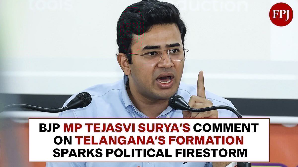 A political row has erupted in Telangana following remarks by Tejasvi Surya in Parliament, in which he compared the formation of Telangana to the Partition of India and Pakistan. His comments have drawn sharp reactions from leaders across political parties, who see them as offensive.