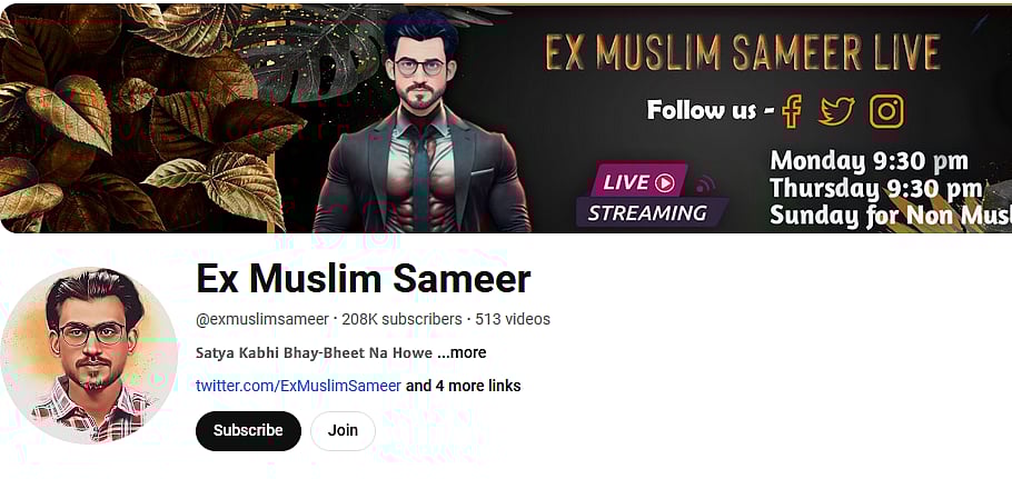The YouTuber identifies himself as a former Muslim and has amassed over 2,08,000 subscribers on the video-sharing platform. According to him, he has changed his name to Siddharth Chaturvedi. In his Instagram bio, he describes himself as an "ex-Muslim", "sanatani", "humanist" and "free thinker".