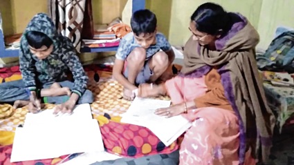 She is pitching in with caregivers and parents to help students learn and imparts one hour daily to teach the kids for their fruitful future.