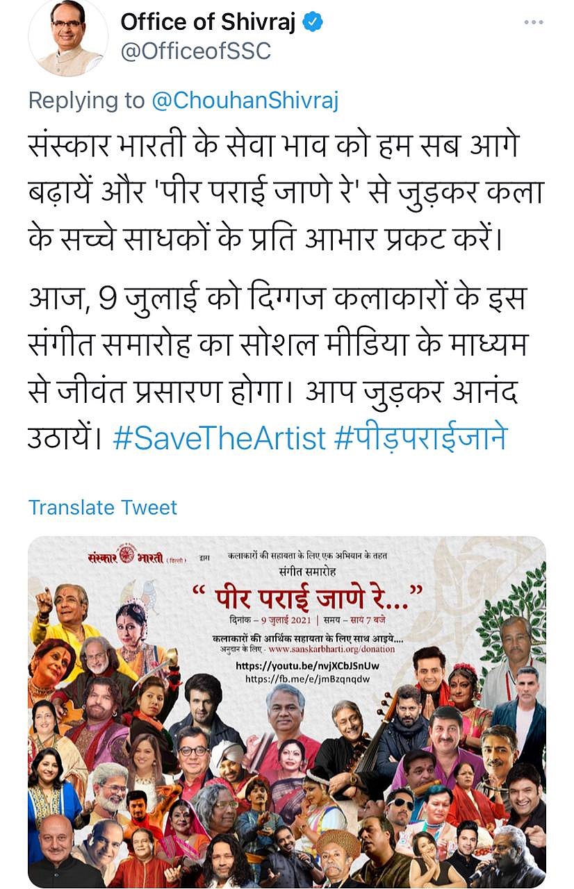 Chief minister Shivraj Singh Chouhan also took part in the twitter drive and assured to help artistes. The social media drive began from 3pm and ended at 7pm.