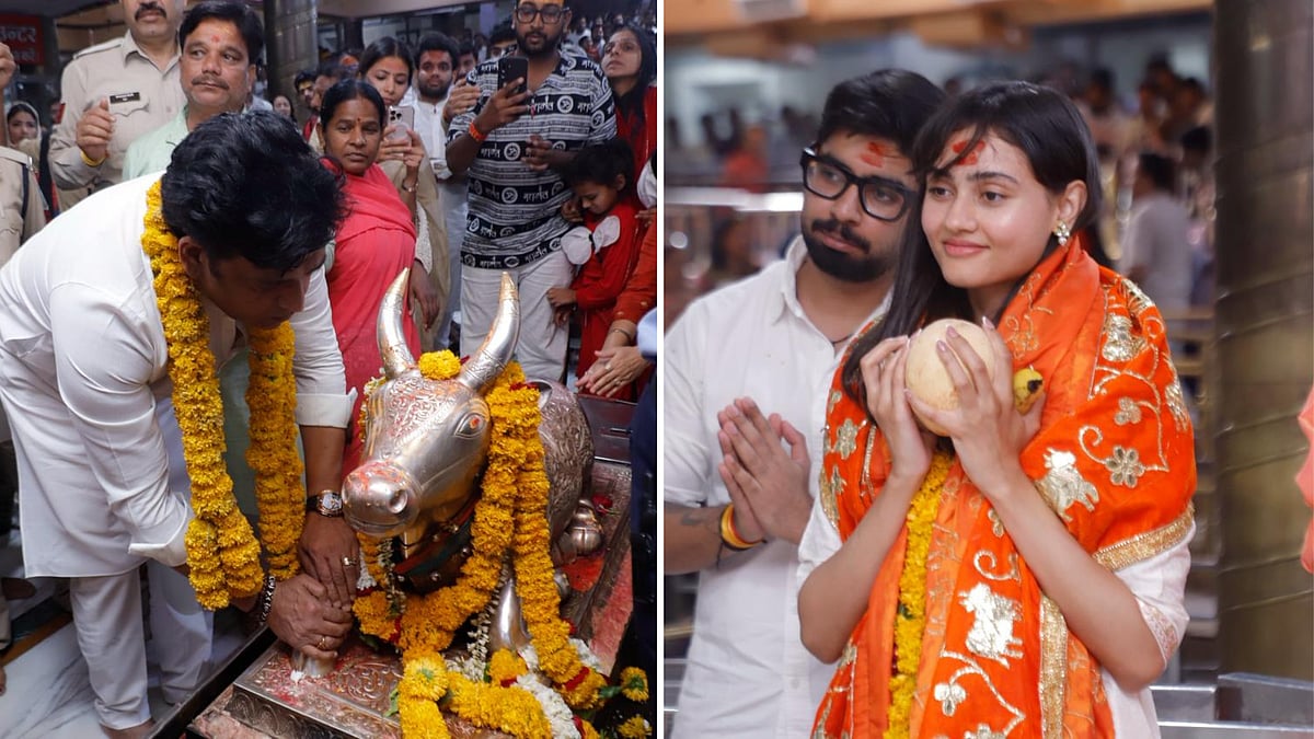 Ujjain (Madhya Pradesh): Bollywood actress Janki Bodiwala and Bhojpuri and Hindi film actor & MP Ravi Kishan visited the Mahakaleshwar Temple on Wednesday morning and offered prayers to Lord Mahakal.