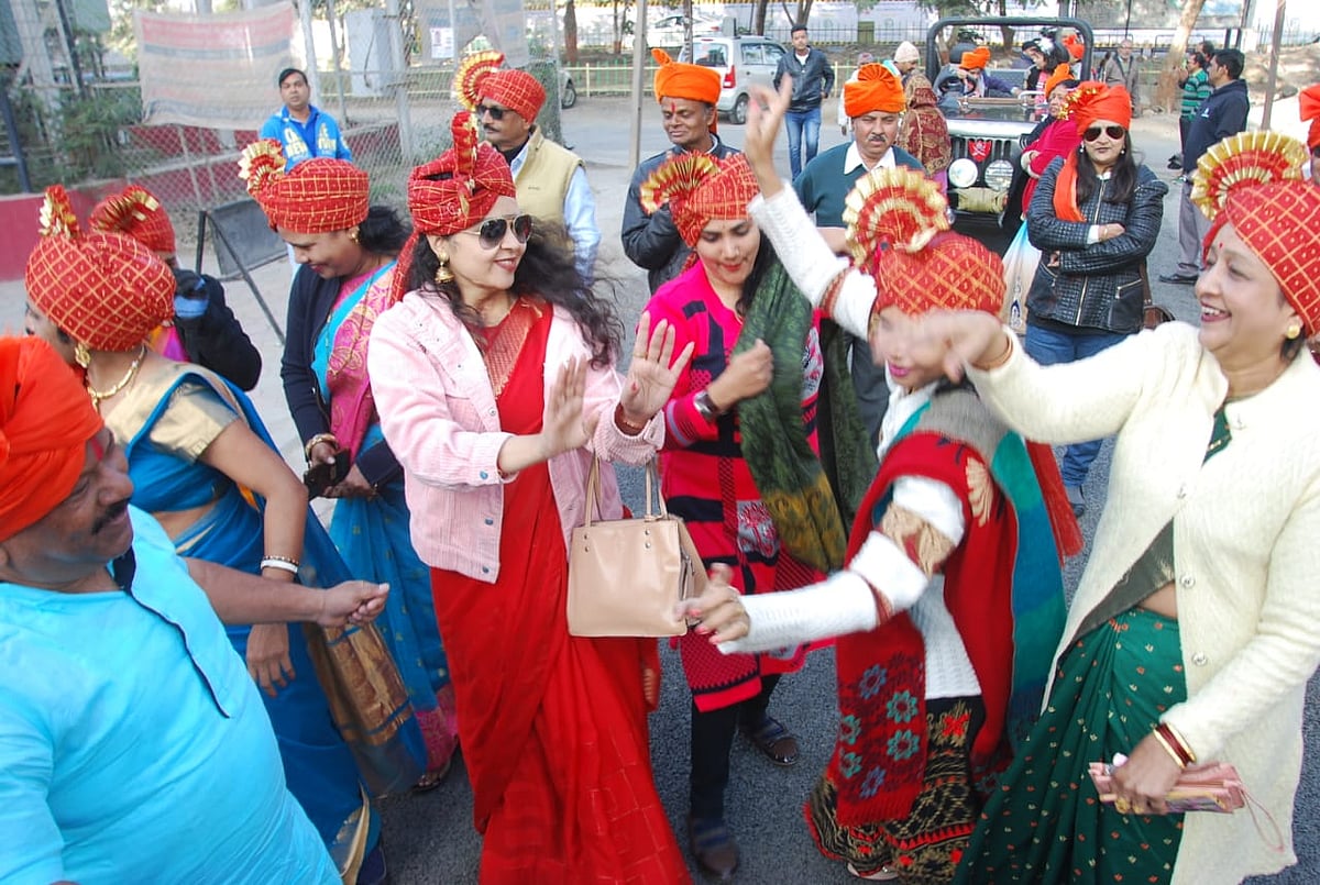 Members of Shri Kshatriya Maratha Navnirman Sena Mahila Mandal watched first day first show of movie Tanhaji on Friday. Mandal state president Chandrakant Kunjeer, Milind Dighe, Rajkumar Duple said that first day first show was organised by mandal women in which the office-bearers of Mahila Mandal reached to watch the film in wearing traditional Maharashtrian attire.