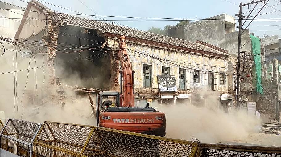 Portions of around 50 houses that were coming in the way of broadening the MG Road between Bada Ganpati to Krishnapura Chhatri were removed by the Indore Municipal Corporation, on Thursday. The road is being developed as part of Indore Smart City Development Limited’s project.