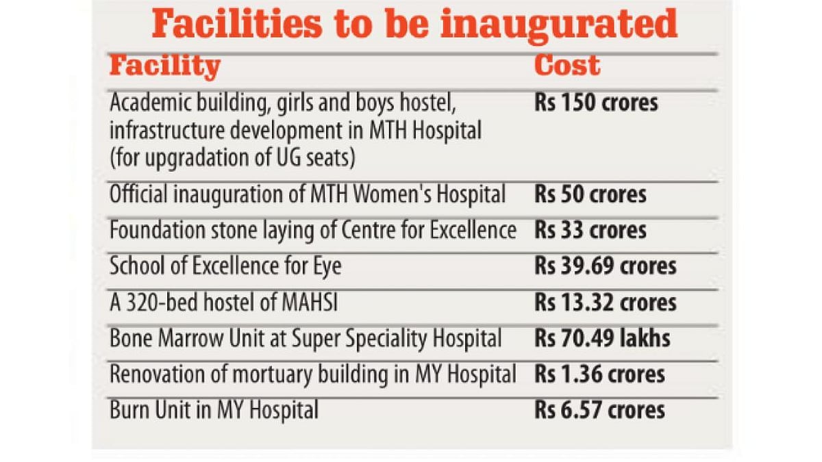 Chief Minister Shivraj Singh would officially inaugurate the facilities developed and upgraded at a whopping cost of Rs 295 crore including the official inauguration of MTH Hospital, School of Excellence for Eye, newly shifted bone marrow transplant unit to Super Speciality Hospital, and burn unit at MY Hospital.