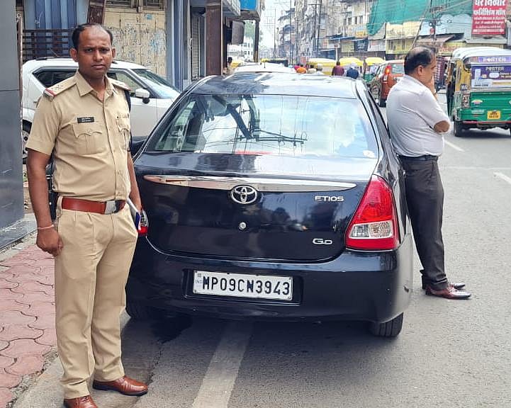 A team led by traffic subedar Sumit Bilonia caught a car for jumping a red light at Yashwant Road Square on Tuesday. The police officer gathered information about the vehicle from the Traffic Management Centre and found that the vehicle had jumped the red light 20 times in different areas of the city. A fine of Rs 10,000 was collected from the car driver on the spot.