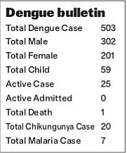 Among the total 503 dengue cases this year, 302 are men and 291 women. The latest 12 cases include five men and seven women with one of the patients under the age of 18.