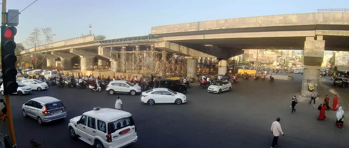Indore (Madhya Pradesh): After safely avoiding all sorts of legal tangles and objections made on the design and drawing of the Bengali Square Flyover, the structure of the flyover is now developed and it is expected that it will be open to the public before monsoon this year. The final slab placement work of the flyover is in process and, now, other minor development work is pending.