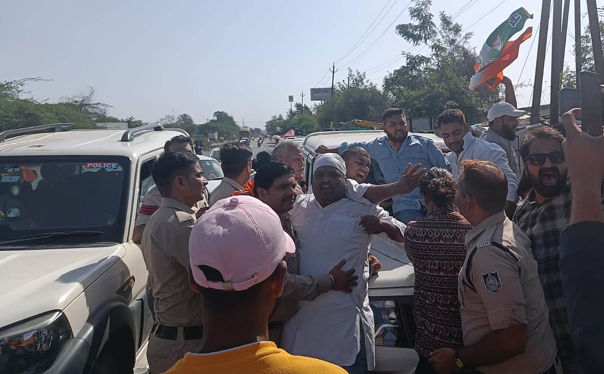 Youth Congress activists stop police van taking Bhuria to Bhopal