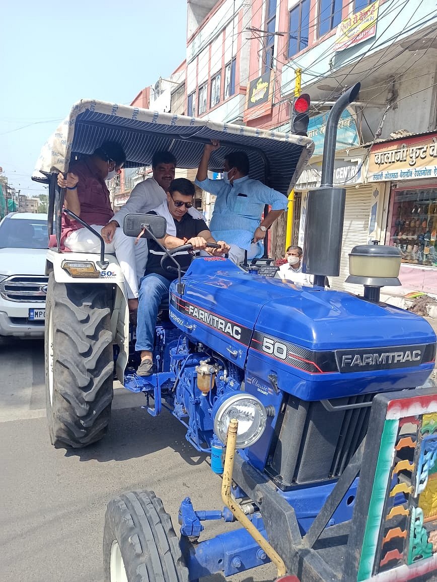Congress MLA and state media in-charge drove a tractor to Lalwani’s place accompanied by MLA Vishal Patel, MLA Sanjay Shukla, and city congress president Vinay Bakliwal. Earlier, the congress leaders garlanded the statue of Devi Ahilya at Rajwada.