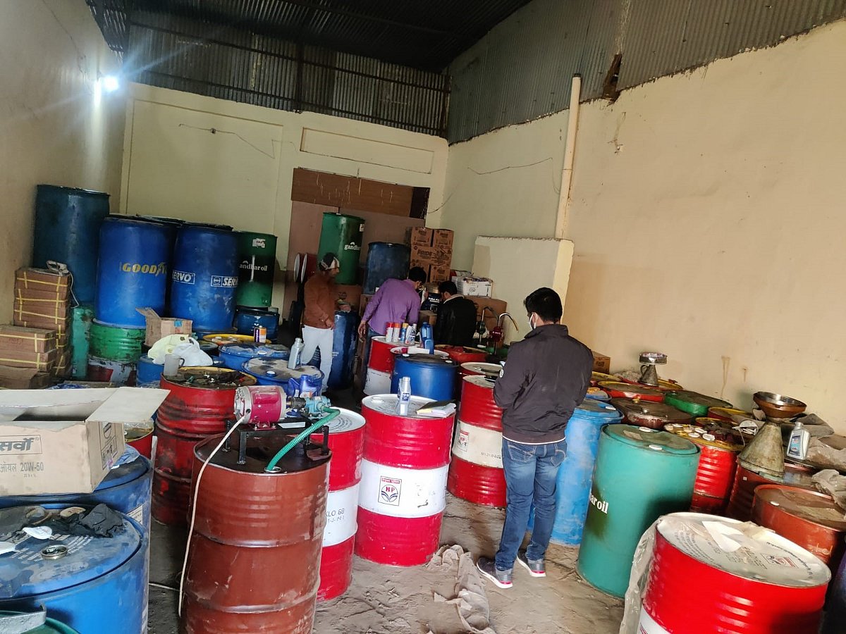 Fifteen drums containing raw oil and two drums containing adulterated oil were seized from the spot. The labels of companies, stickers, packing machine and other equipment were recovered from the spot and further investigations are on.