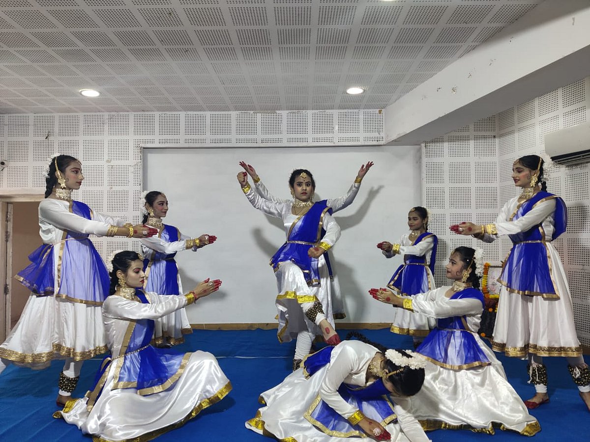 Eighteen artists from the Dhrupada Academy performed Bharatnatyam, Kathak and Mohiniyattam in solo duet and group performances at the feet of the Devi in the Kunti Mathur Auditorium, Vijay Nagar.