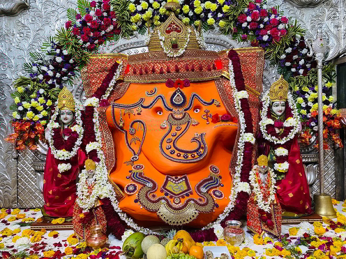 The priest of the temple, Pandit Ashok Bhatt said that it took about an hour for Lord Ganesha to be adorned. Lord Ganesh and his consorts were offered various kinds of fruits, he added.