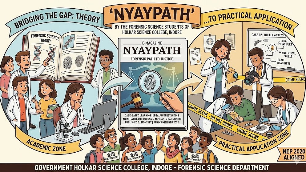 Indore (Madhya Pradesh): In one of its kind move, forensic students of Government Holkar Science College have launched an e-magazine titled “Nyaypath”, aiming to address the growing disconnect between theoretical knowledge and practical application in forensic education.