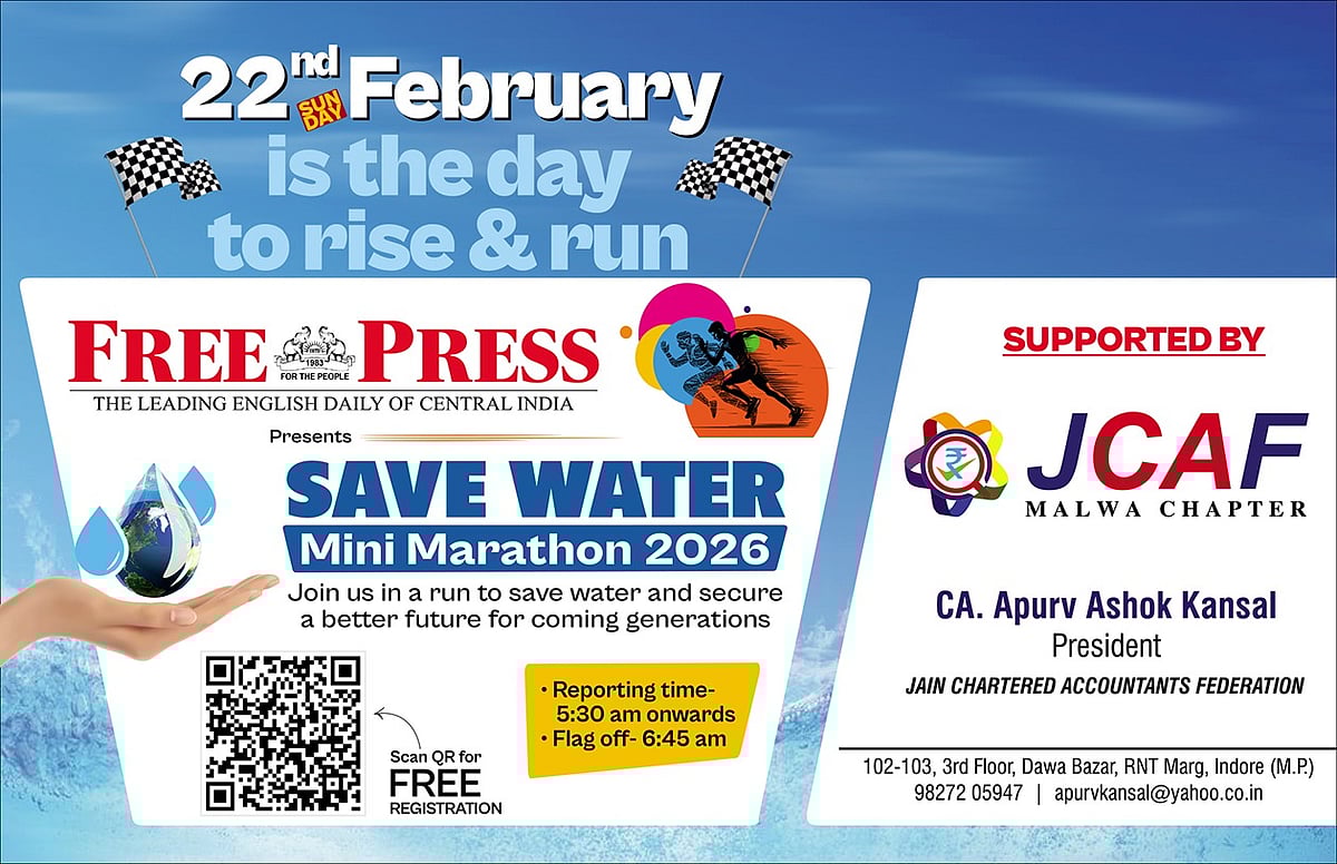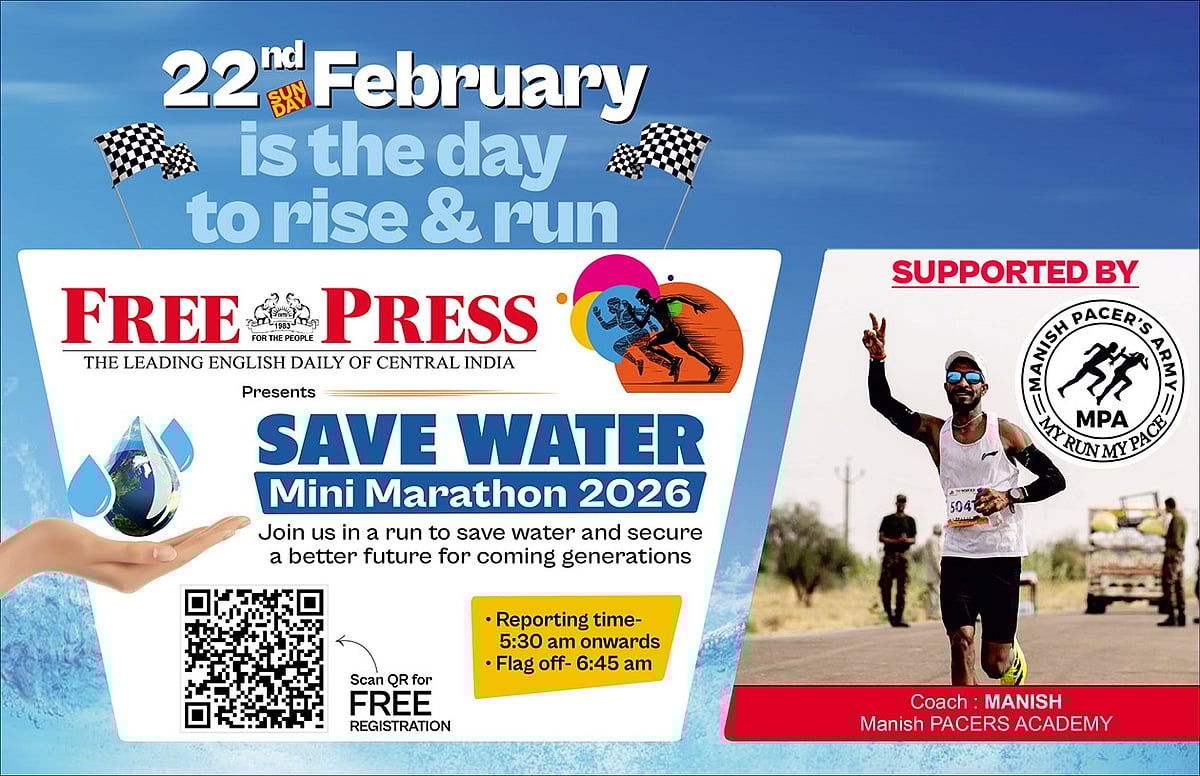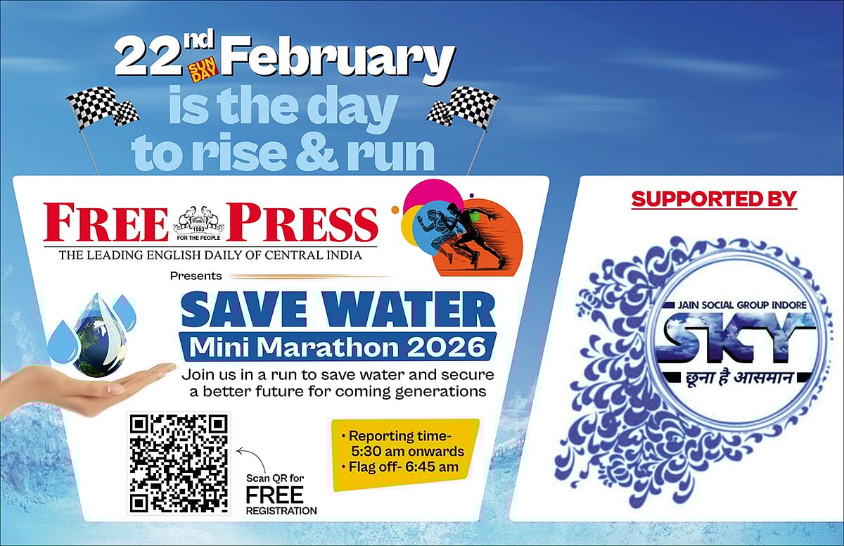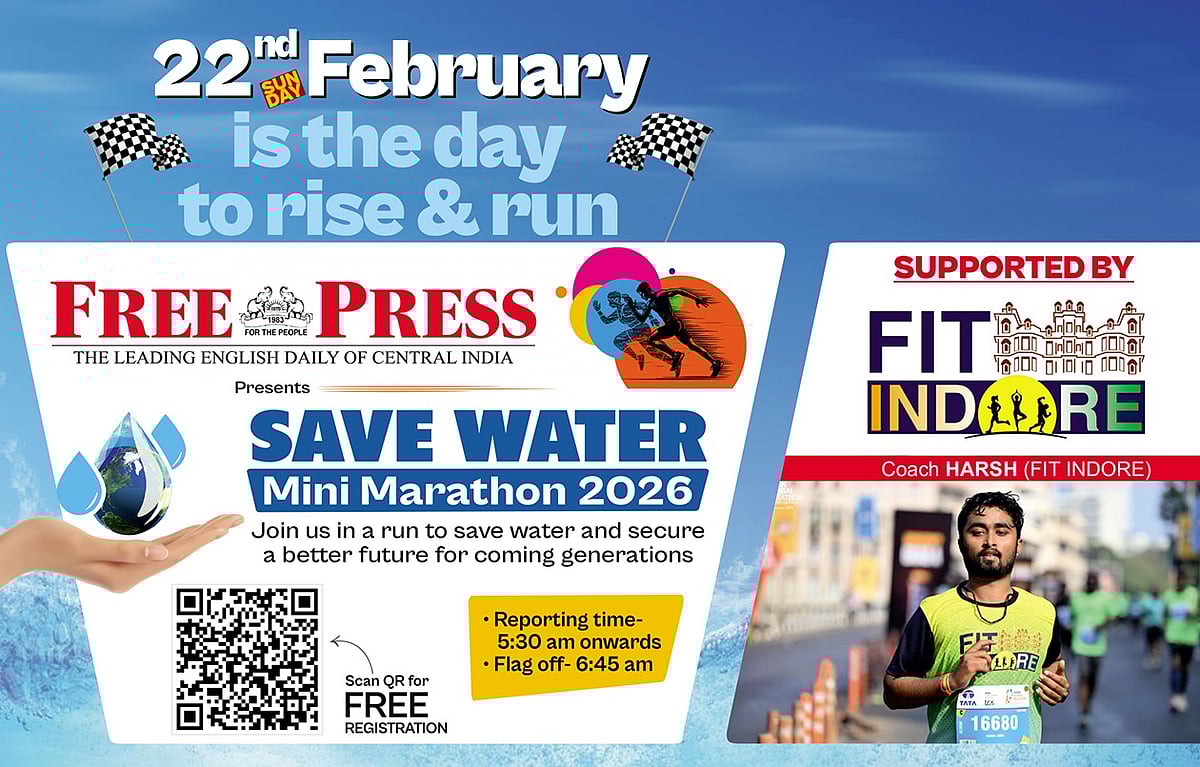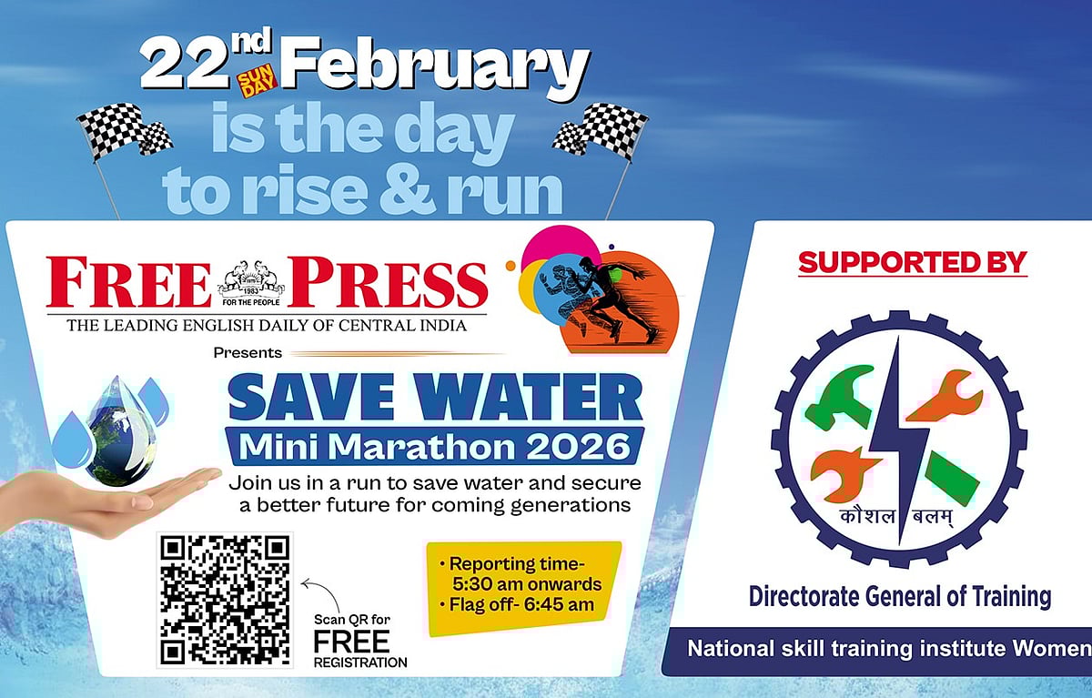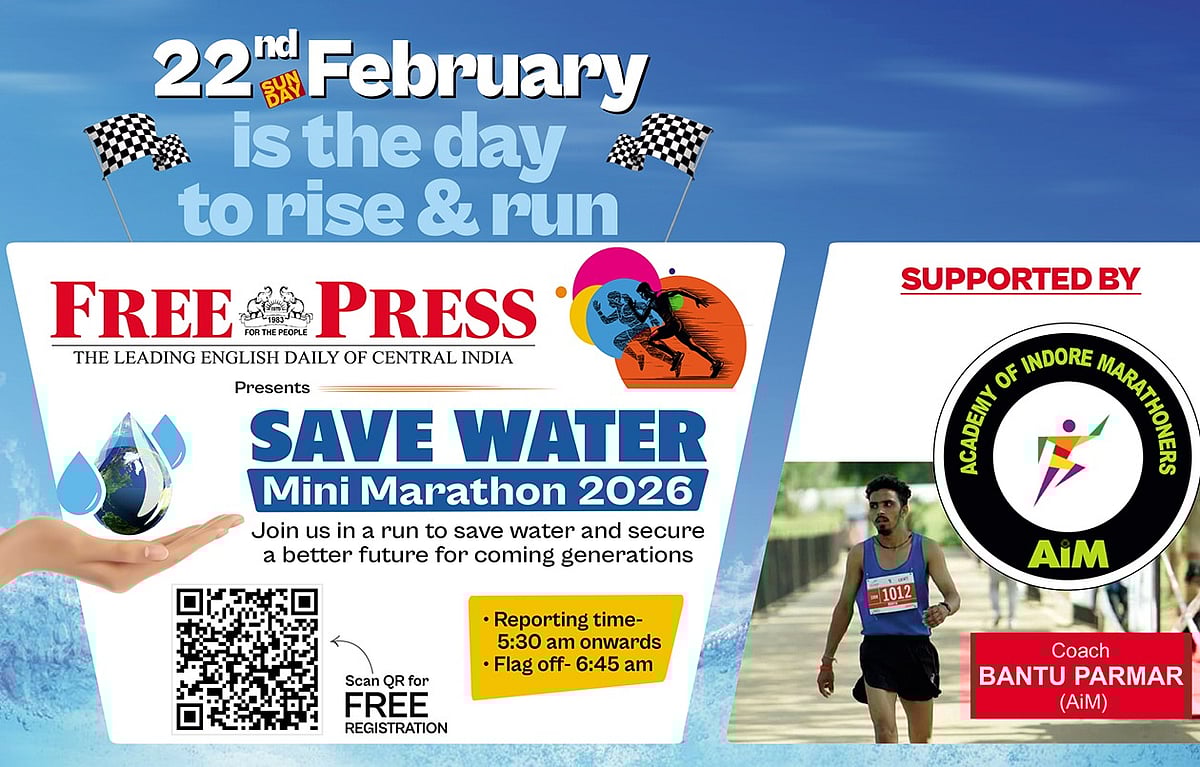 Indore (Madhya Pradesh): The Free Press, Indore, is going to host the ‘Save Water Mini Marathon 2026’ on February 22, 2026. The run aims to promote water conservation and encourage people to build a better future for the next generation.