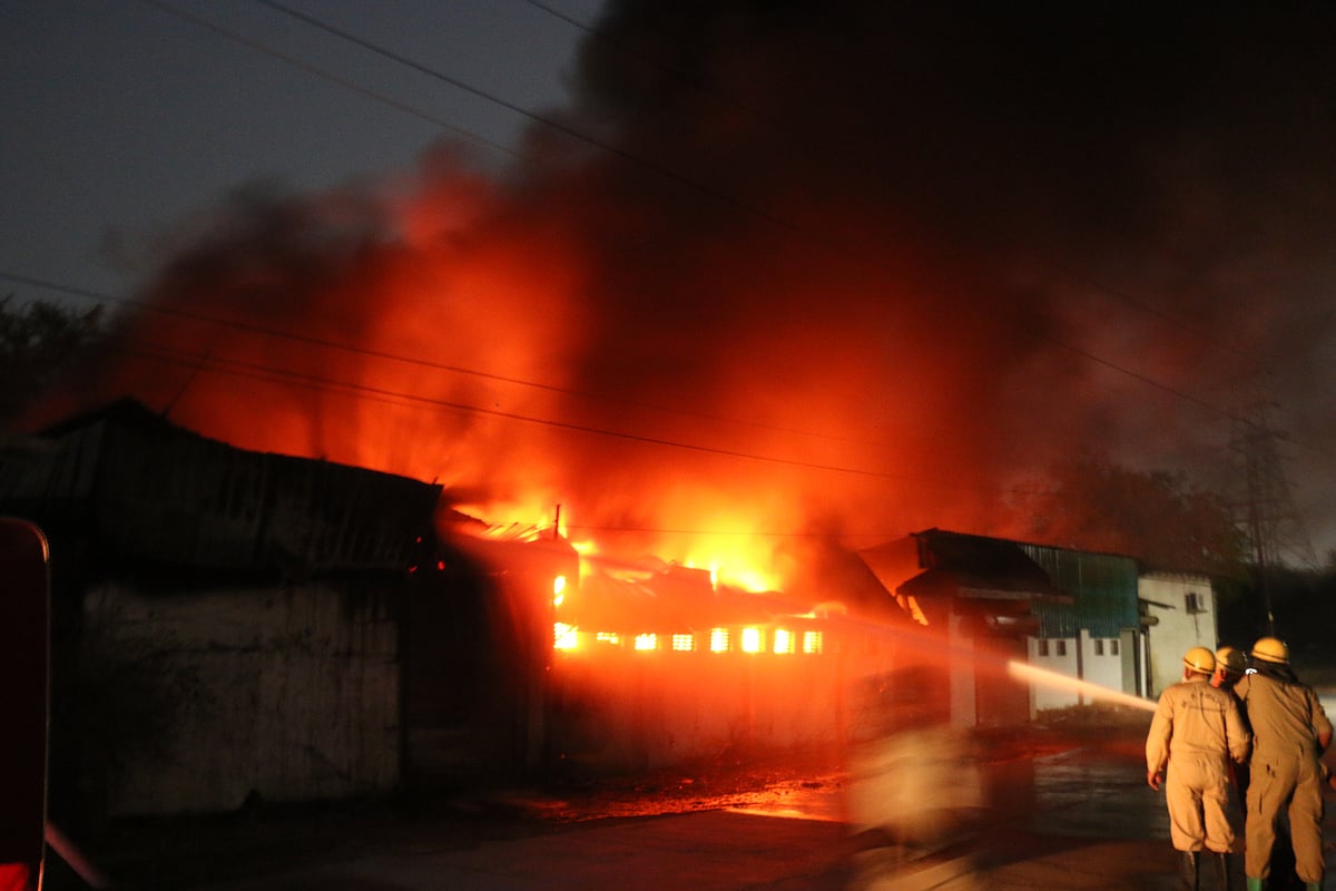 Fire brigade SI RC Pandit informed the Free Press that the incident took place around 6.30 pm. People spotted heavy smoke and flames coming out of Vishal Ink and Chemical factory and informed the police and the fire brigade. The firefighters reached the spot when the flames had started to spread. More than one lakh litres of water was consumed in extinguishing the flames.