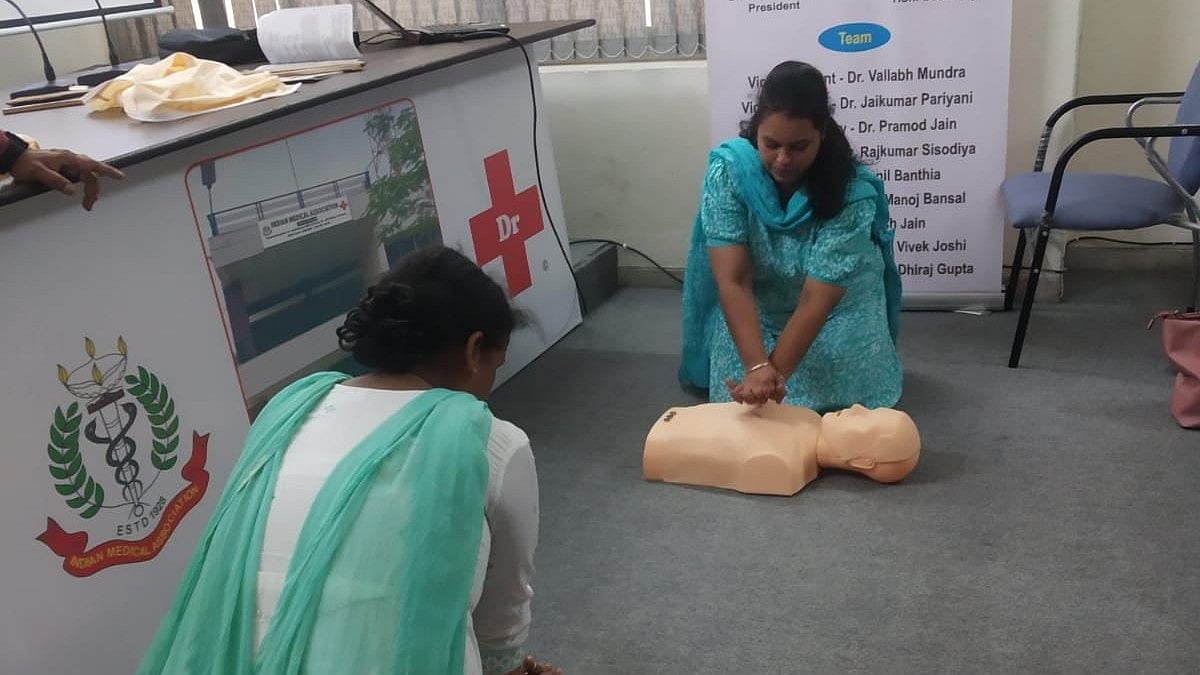Indore (Madhya Pradesh): Indian Medical Association-Indore branch organised a CPR training session for lady teachers of National Public School on Saturday. They received scientific as well as mannequin training in CPR during the session.