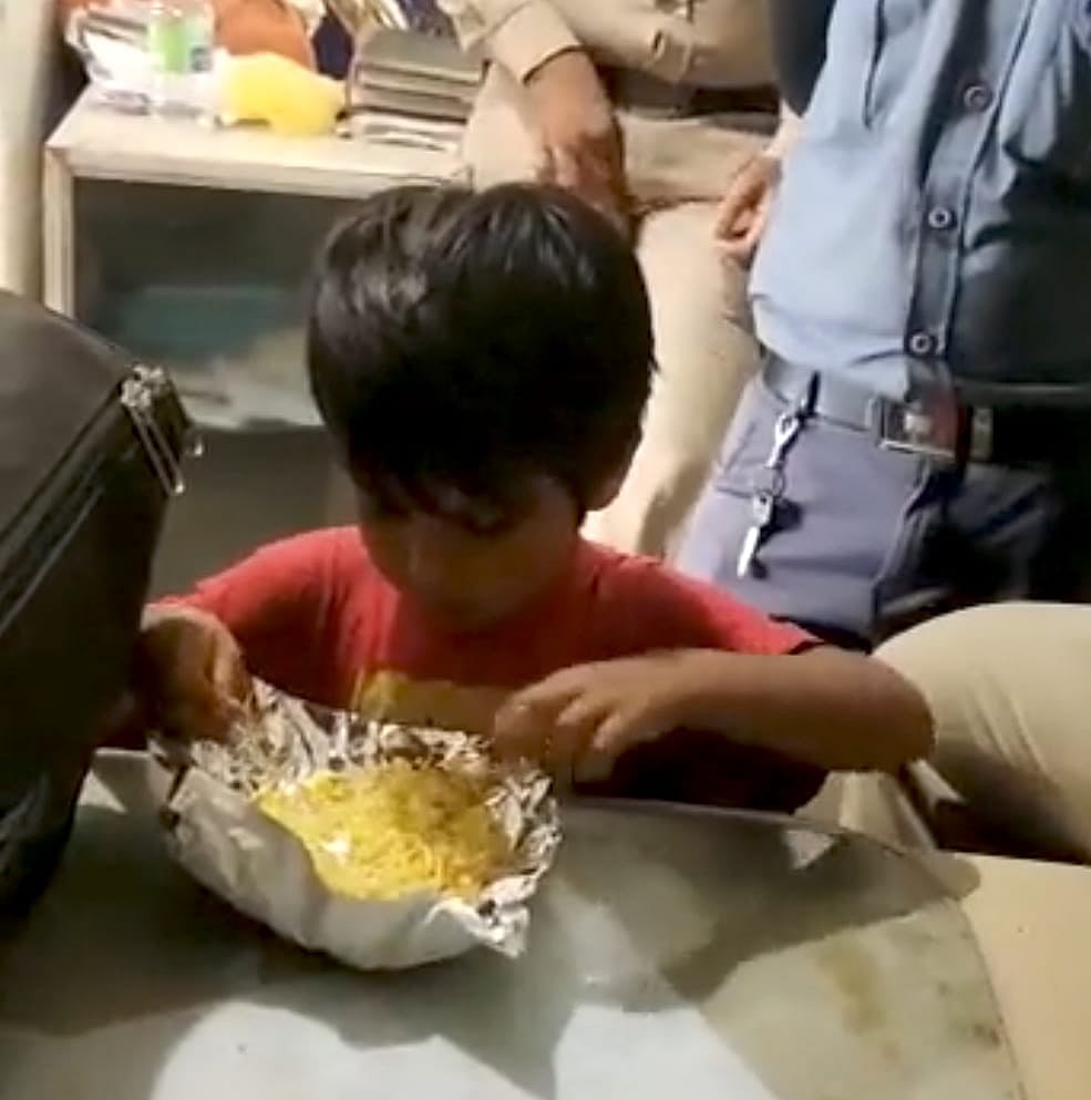 When they reached the police station they were reunited with the kid who was busy playing with the police staff who got him candies and were taking care of him. The boy upon sighting his family ran to them and bid farewell to the police staff who duly handed him over to the family. The family thanked the police staff for rescuing the kid and looking after him.